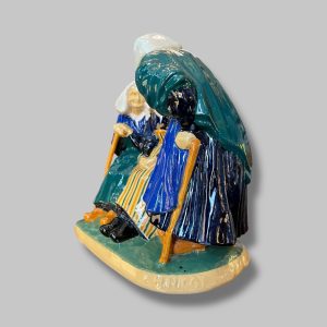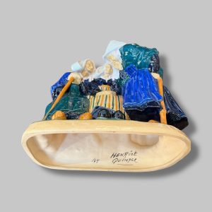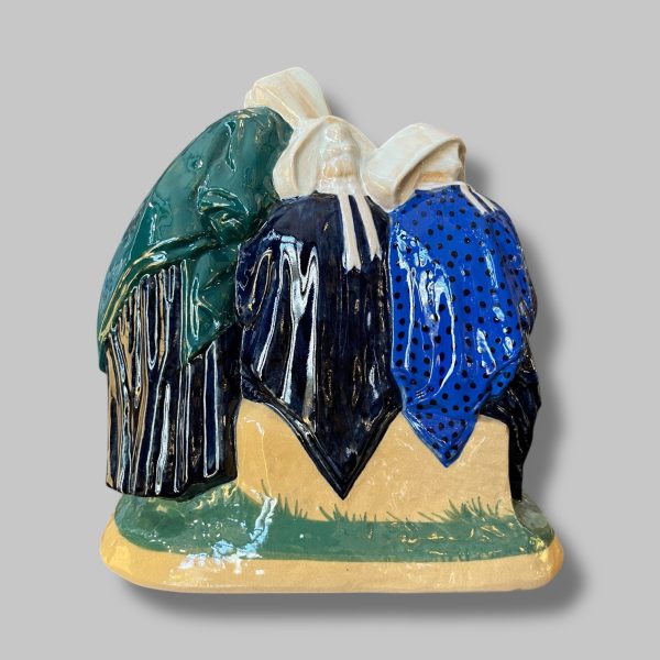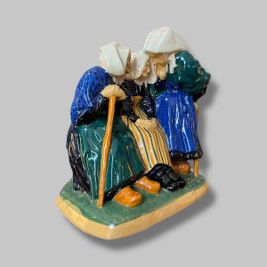 « Les Commères », sujet en faïence émaillée polychrome, signé à l’intérieur « 145 Henriot Quimper »