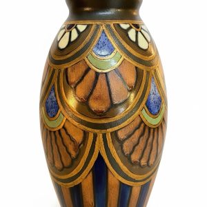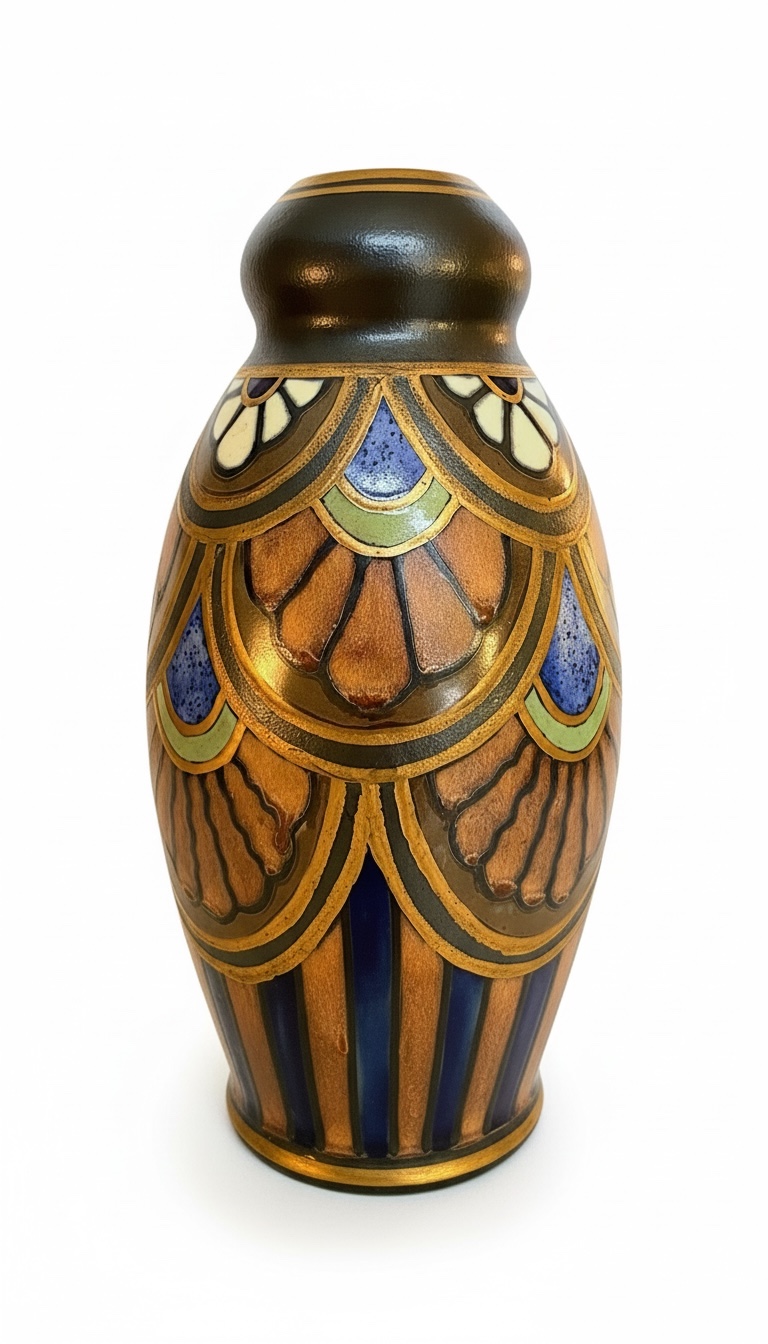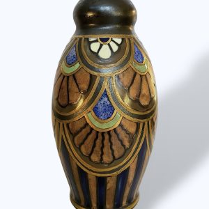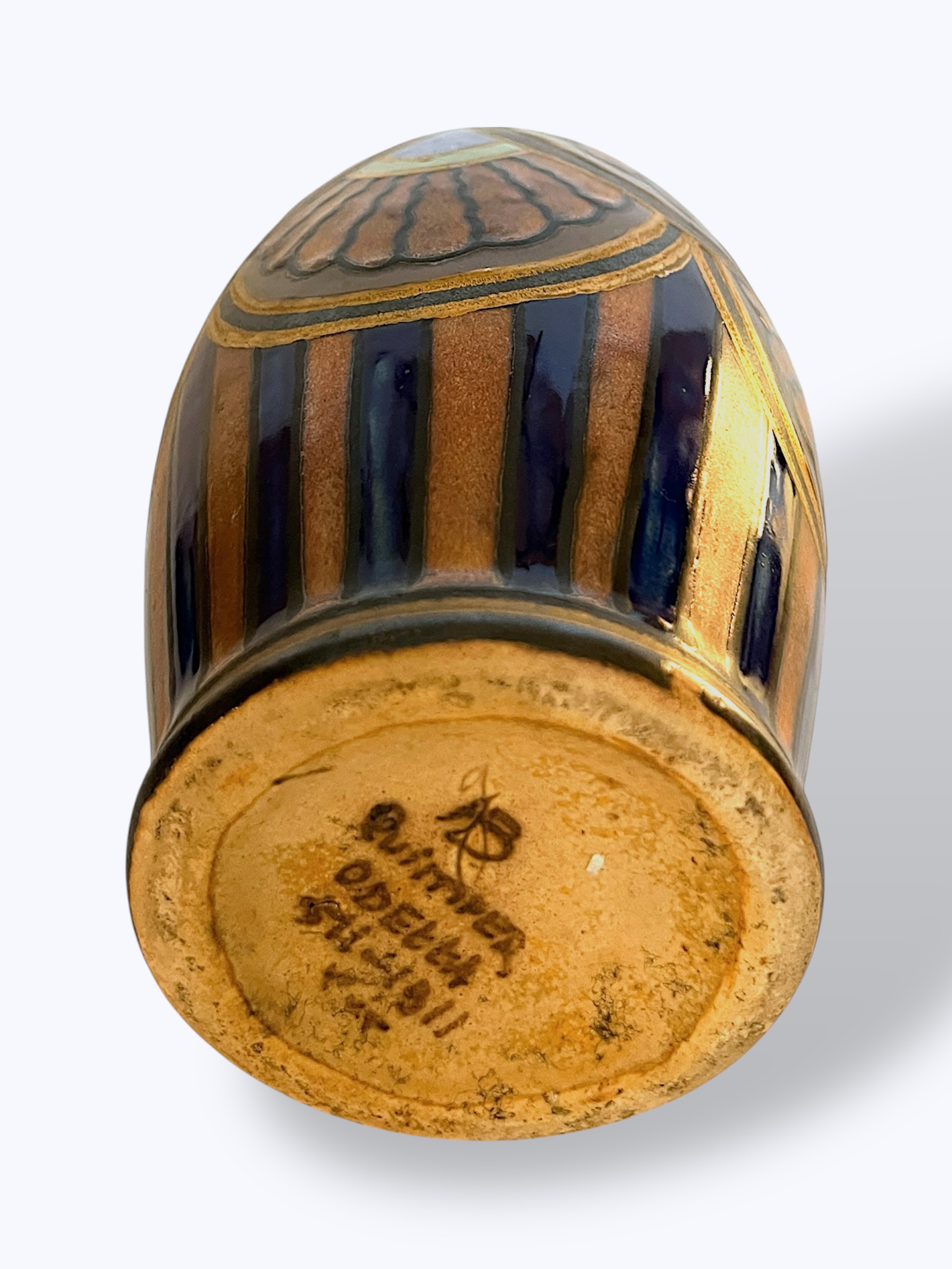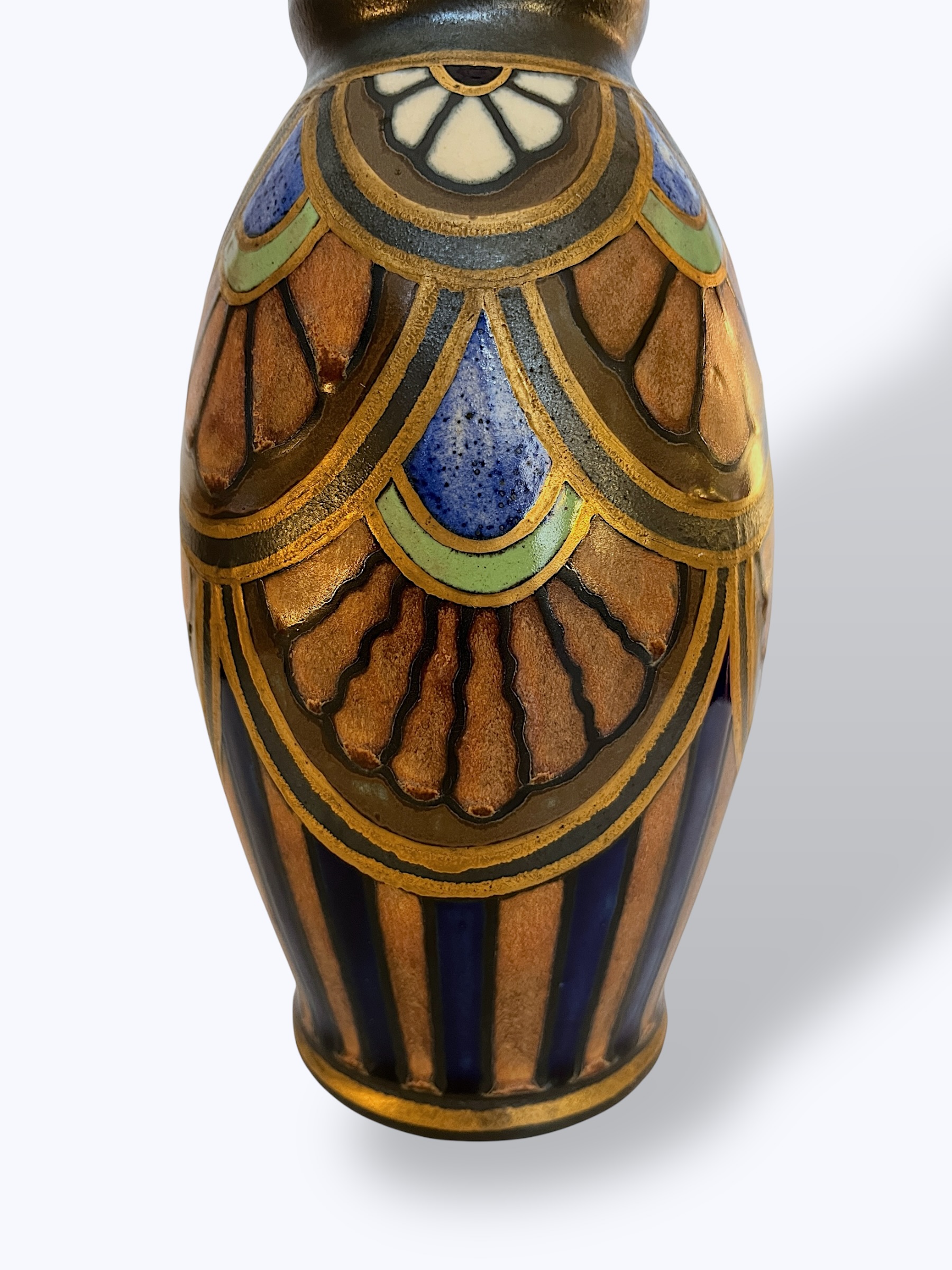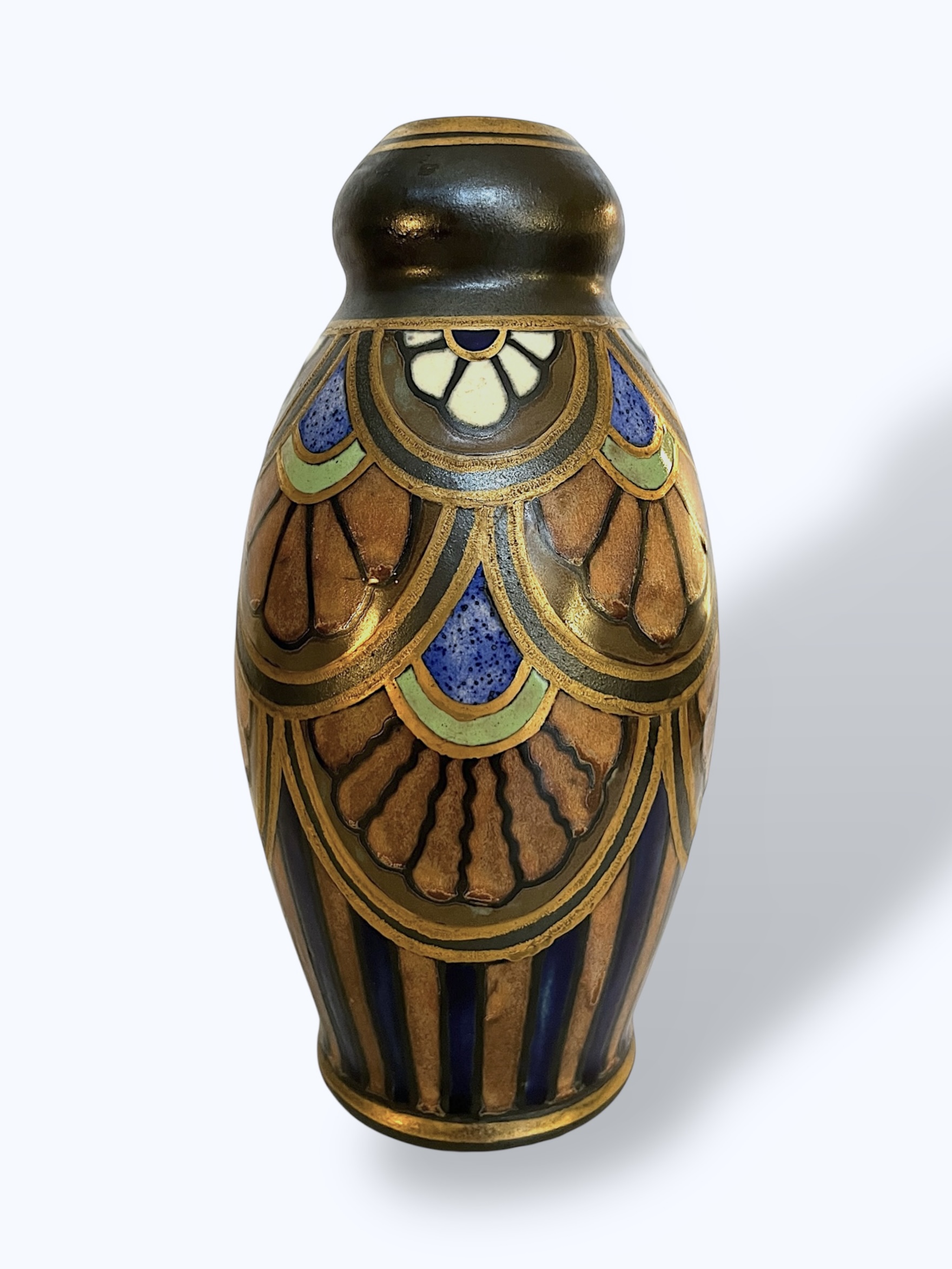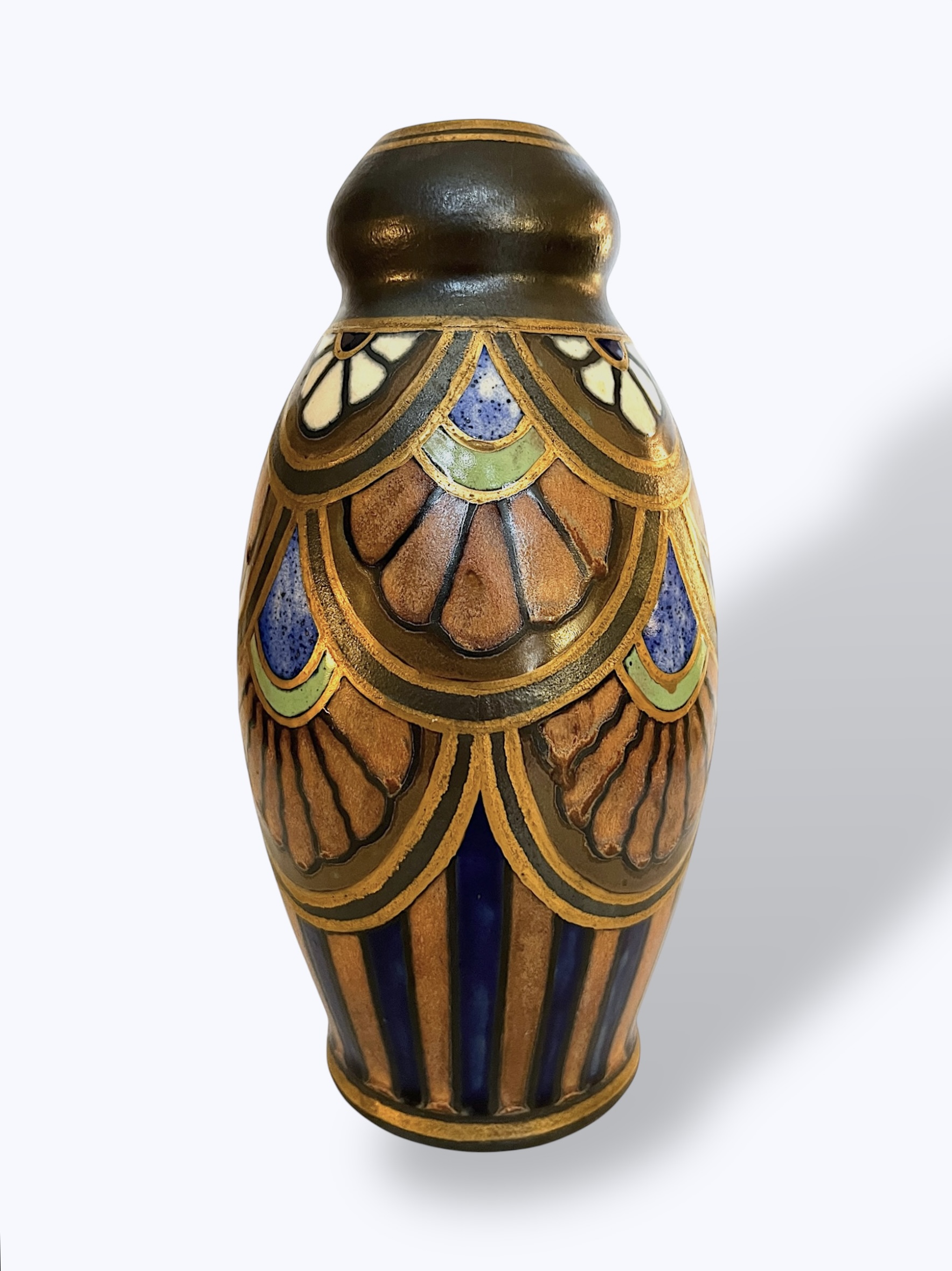 Rare vase en grès à décor géométrique stylisé avez doré, vers 1930.