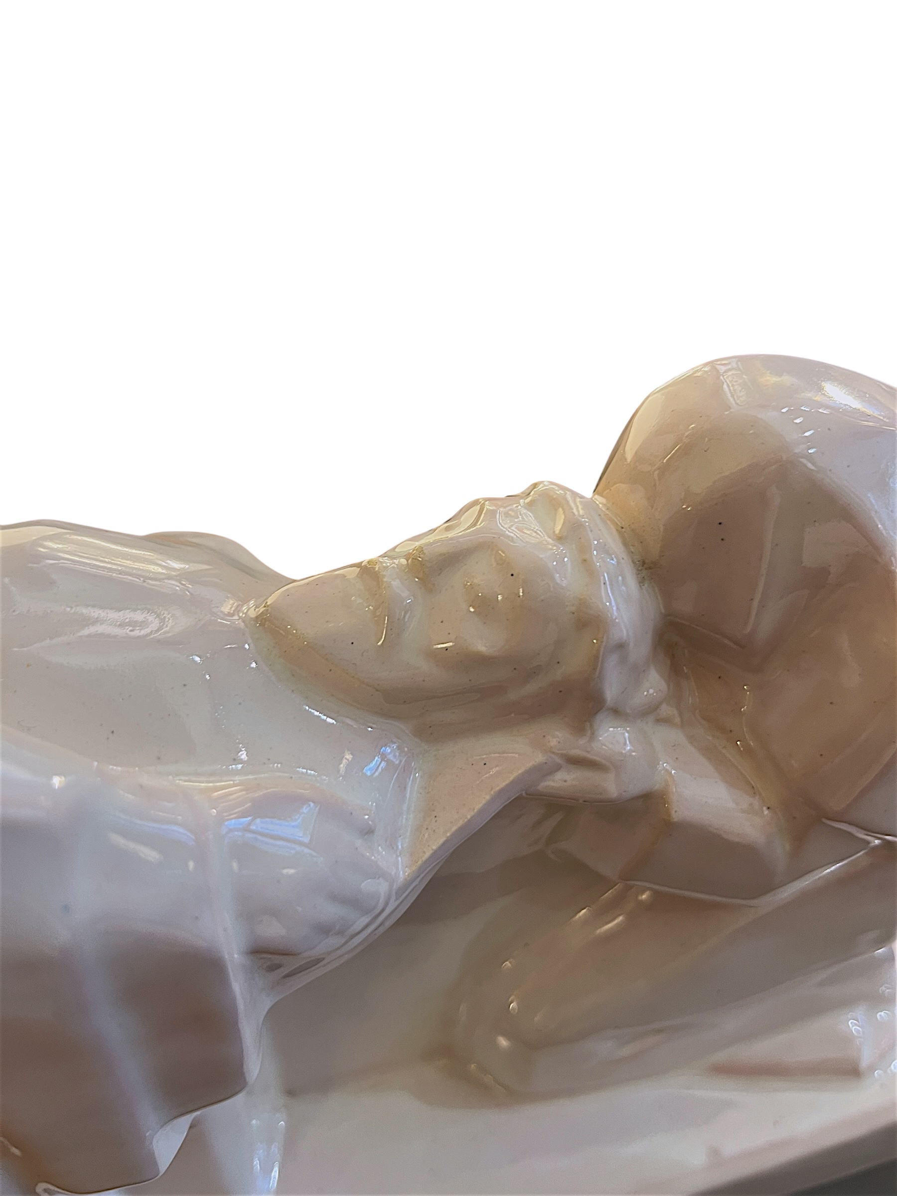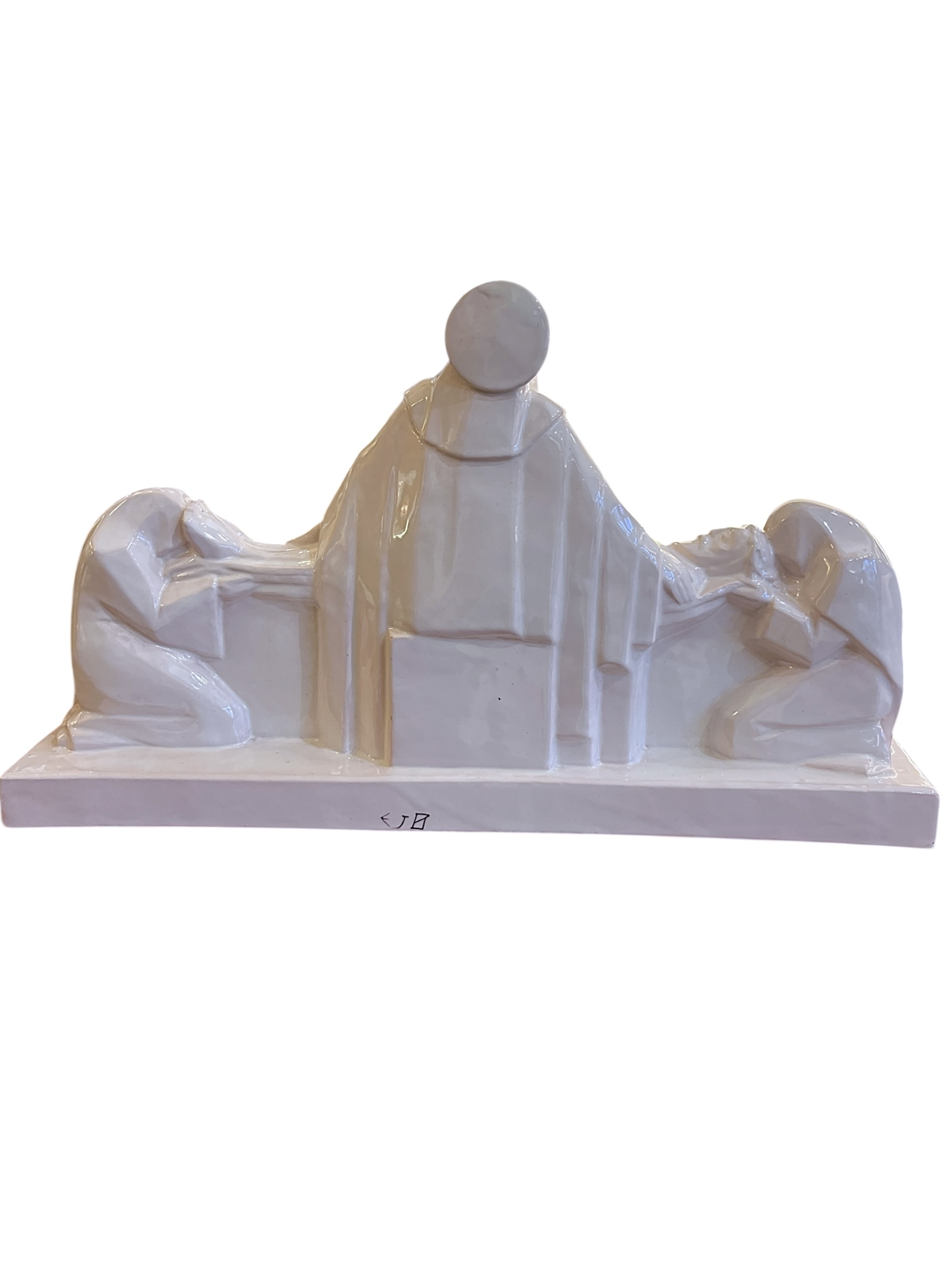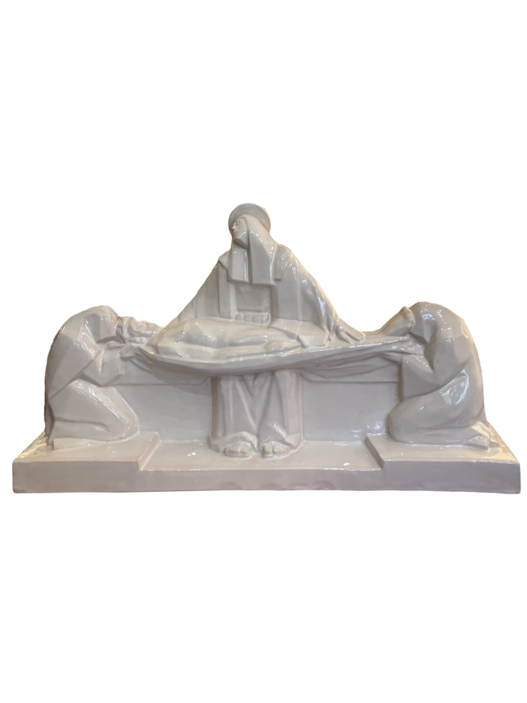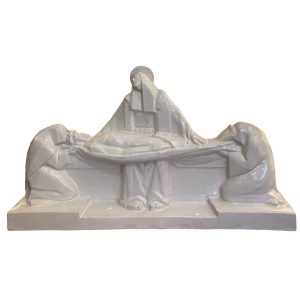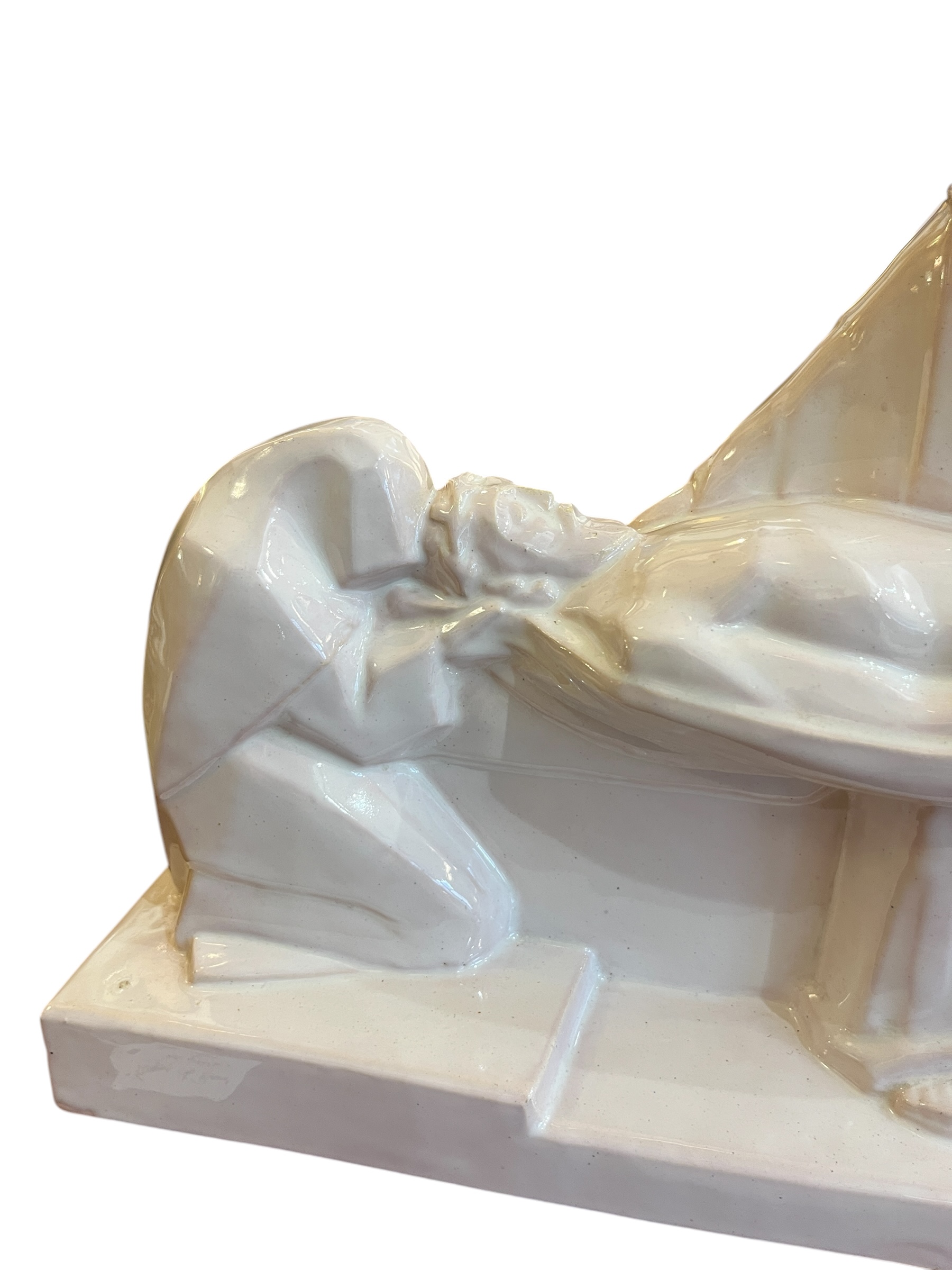 Groupe en faïence émaillée blanche représentant le Christ à la sortie du tombeau.
