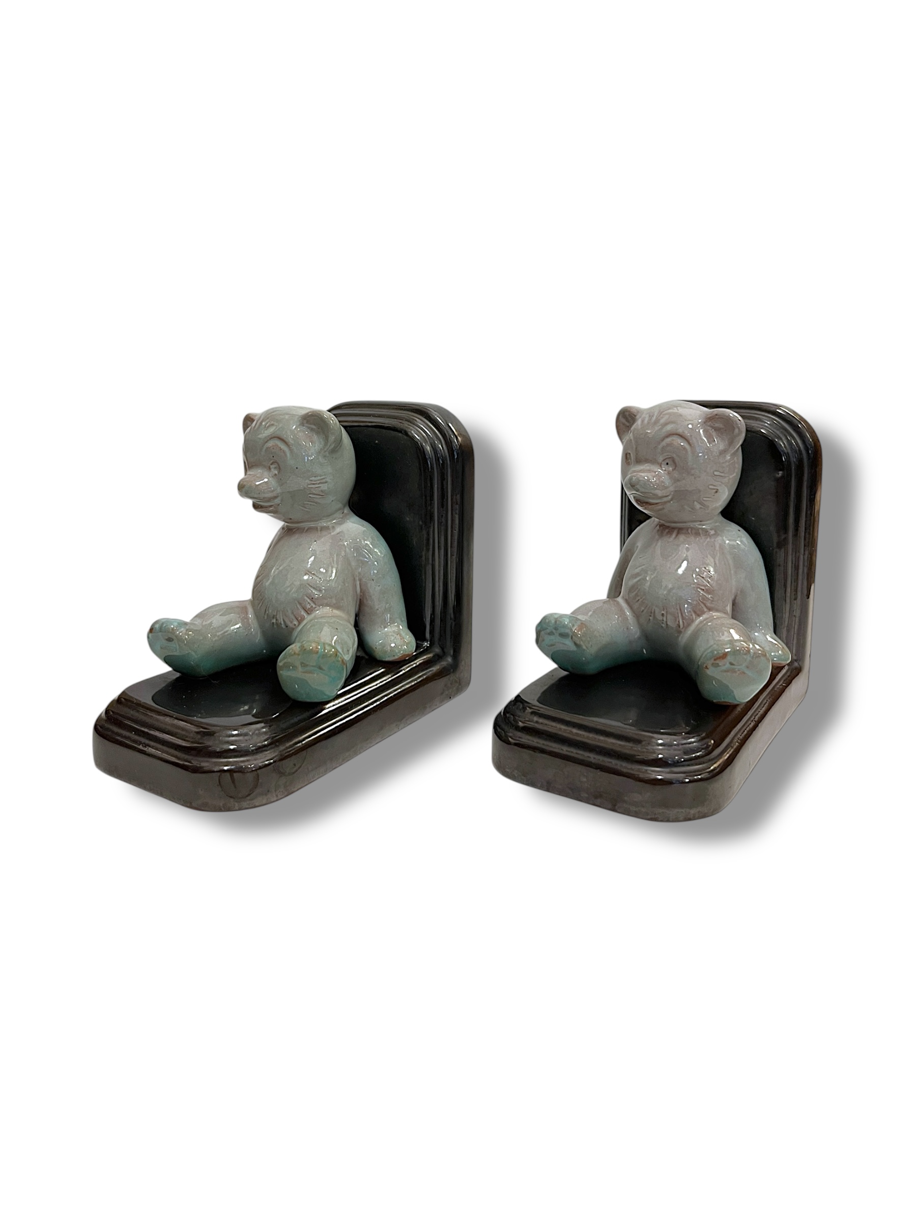 Paire de serre-livres en céramique, Art Déco. Vers 1930 H. 11cm / L. 12,5cm Envoyer